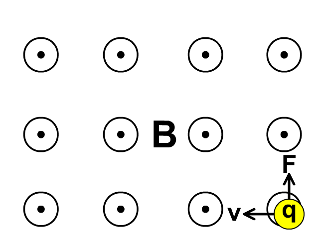 1. What direction is a positive charge moving if force is going to the right and the magnetic field is directed away from you into the page?