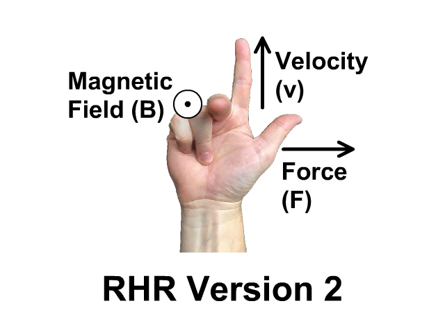 Depending on your teacher they may have taught you an alternate version of the previous right hand rule. Both show the exact same relationship between magnetic field, force, and velocity.