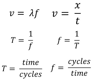 - Solve for frequency an period using (T=1/f) or cycles and time.