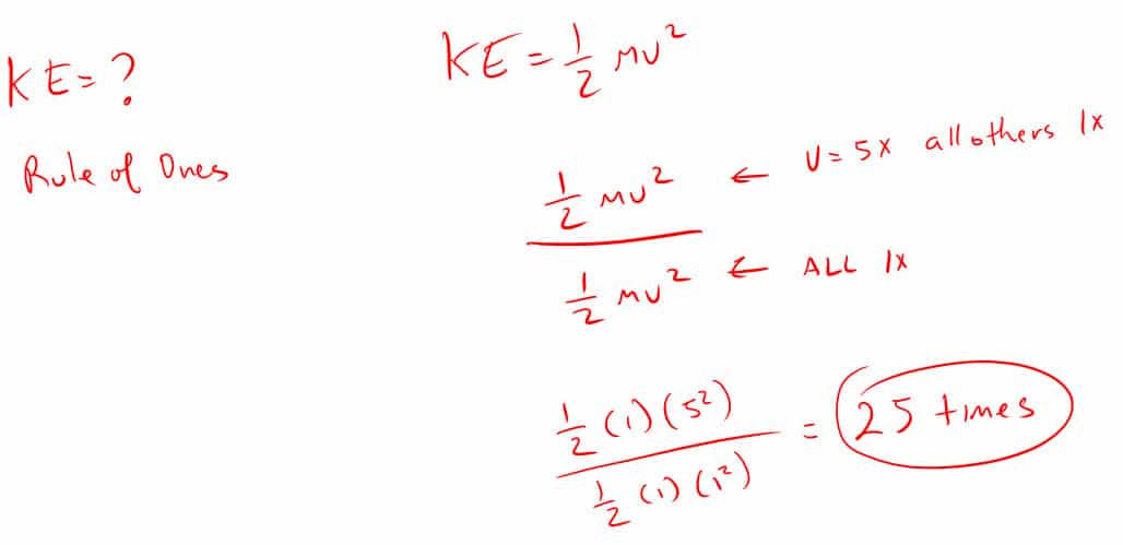 6.  How many times greater is the kinetic energy of a ball that is going five times faster?