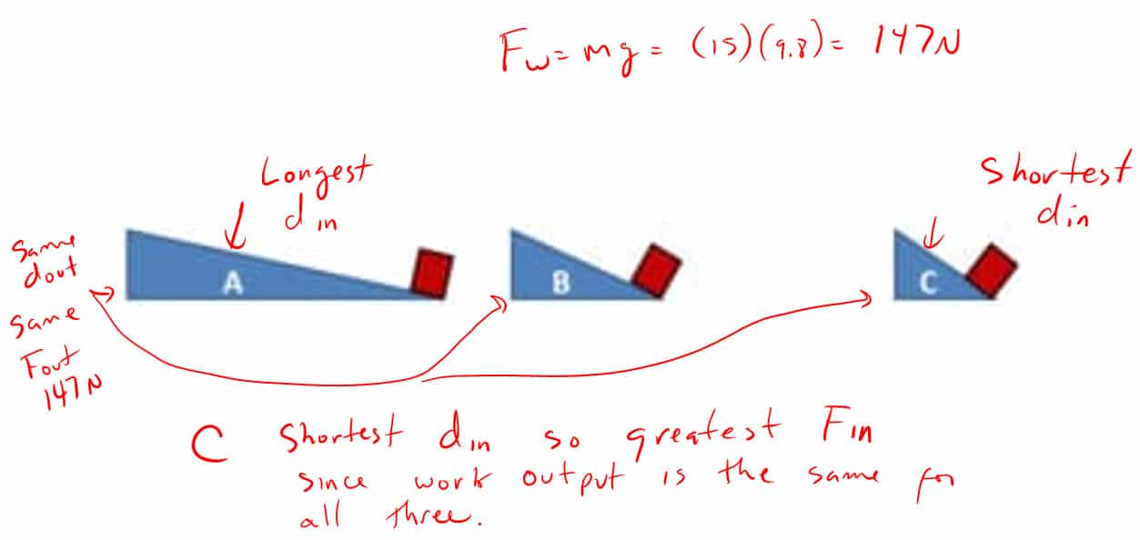 3. Which incline would require the most input force from you to raise a 15 kg mass?  Why?
