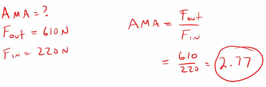 4. What is the actual mechanical advantage if Sam pushed a 610N box up an incline plane with a force of 220N?